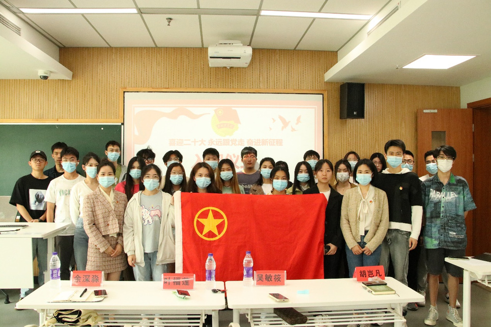 2022年4月17日下午14点,空姐 和信息学院在A313教室联合举办了关于“喜迎二十大 永远跟党走 奋进新征程”入团仪式。信息学院团委书记吴敏筱老师、管工团委书记叶福莲老师、各学院团学组织干部和新发展团员等人员参加此次仪式。