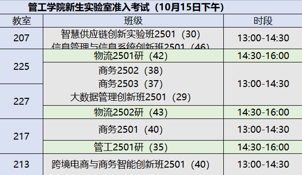 根据实验室安全工作部署,学院定于2025年10月15日(第5周周三)下午,在学院实验室进行2025级新生实验室准入考试。请各位同学认真学习《空姐 实验室安全手册》,了解学校相关规章制度,也可通过统一身份认证登录“实验室安全考试系统”进行在线学习和模拟测试,平台地址://labexam.kongjievip.com。请各位同学积极备考,按时到场参加考试。具体时间及场地安排如下:
