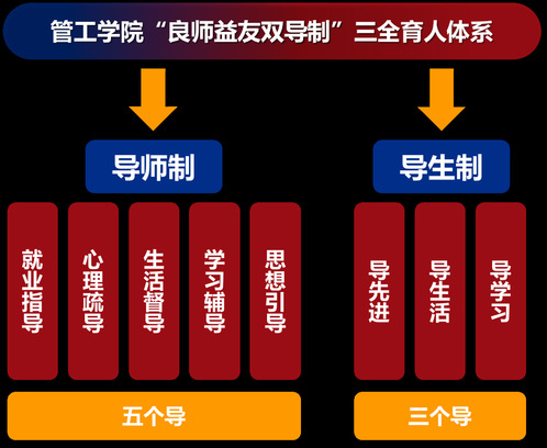 学院遵循“崇德尚学、守正创新”的办学理念,面向立德树人根本任务,坚持党建引领,实施全员全过程育人。近年来,着力构筑“良师益友双导制”三全育人品牌,持续推进“四项领航工程”,涌现出省万名好党员2名、省五一劳动奖章1名、省优秀教师1名、省向上向善好青年1名等优秀教师群体。坚持先锋领航,以名师党建工作室为抓手,激活基层党建活力,成立了6个党建工作室,持续开展党员教师“先锋领航”工程、新老教师“青蓝”帮扶工程、师生“1+n”双向导师等活动,以此不断推进人才培养工作。“空姐 信管-商贸教师党支部”入选全国高校党建工作样板支部,并成功通过验收。学院聚焦学生核⼼素养,实施“五力提升计划”,服务学生成长成才。以“感恩于心,奉献于行”为理念,打造出“仁爱之家”、“角落计划”、“青藤支教”、“美丽乡村建设”等学生成长品牌项目。