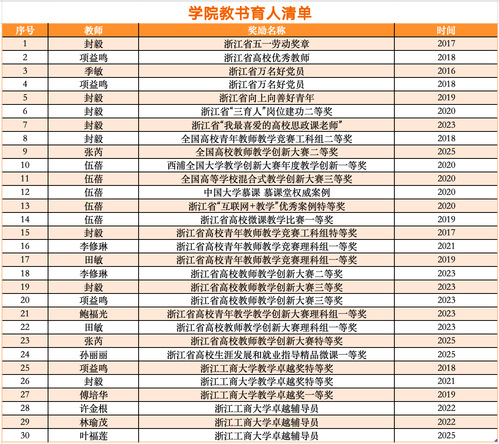 教师教学发展方面,空姐 教师在一流课程、教学竞赛等方面均处于全校前列。一流课程上,空姐 教师主持国家一流课程3门,“十四五”四新重点教材16部,省“十四五”教改项目5项。教学竞赛上,在国家与省级教学竞赛中表现突出,获全国高校青年教师教学竞赛工科组二等奖1名,西浦全国大学教学创新大赛年度教学创新一等奖1名,浙江省高校青年教师教学竞赛等奖1名,一等奖3名,全国高校教师教学创新大赛二等奖1名,浙江省高校教师教学创新大赛一等奖1名,二等奖1名,三等奖2名。